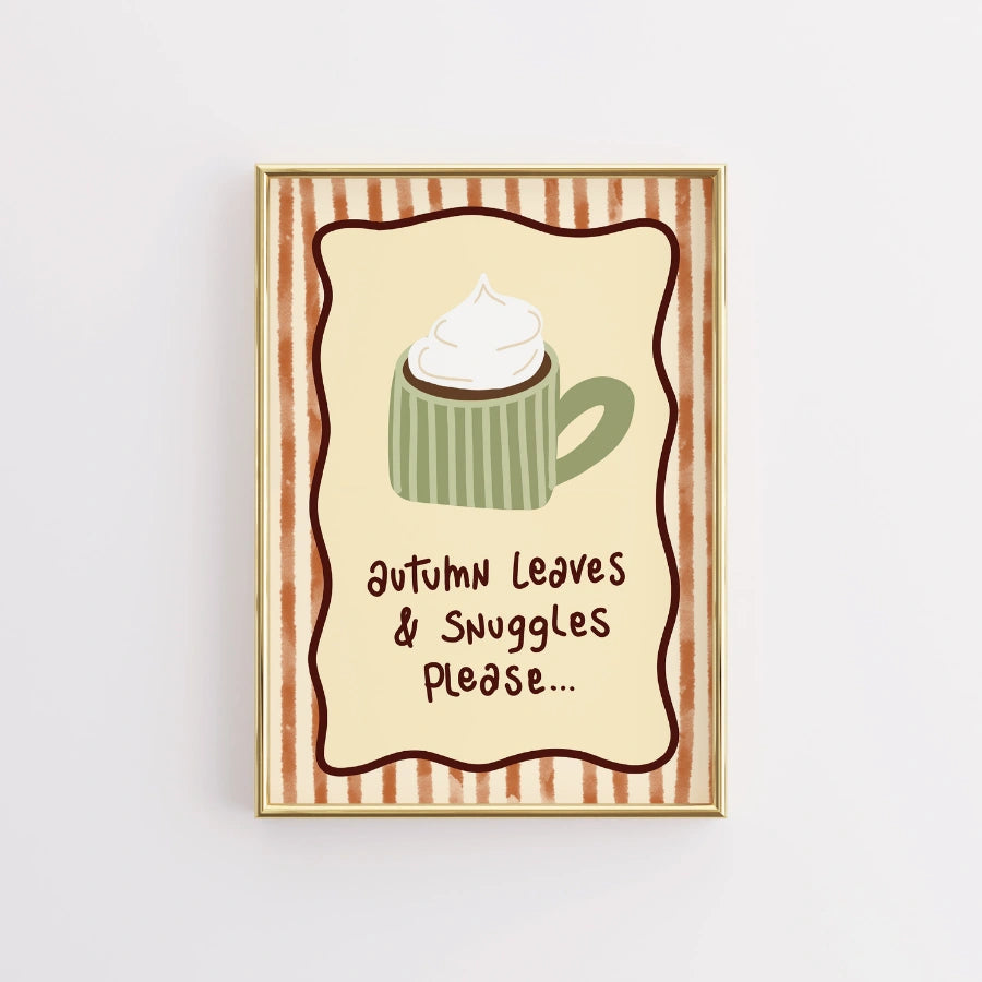 Autumn Snuggles Wall Art - Cozy Fall Coffee Print