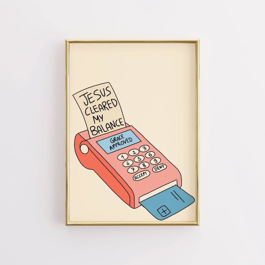 Jesus Cleared My Balance Wall Art – Funny Christian Print