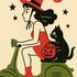 Retro Witch on Scooter Halloween Print – Cute Black Cat Wall Art
