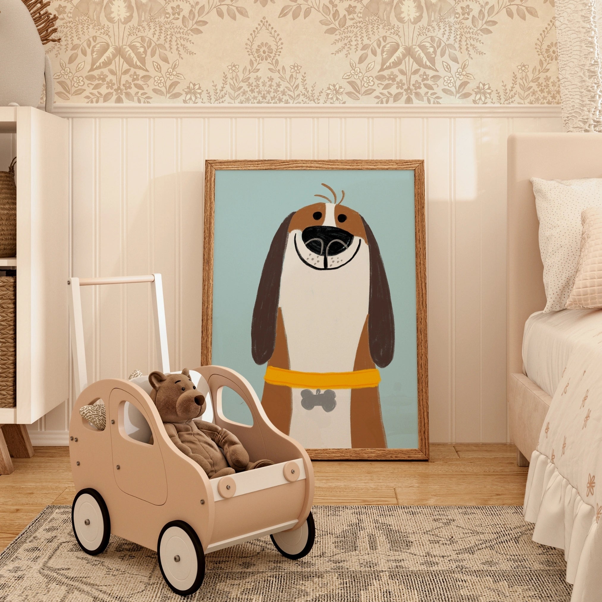 Happy Dog Nursery Wall Art – Cute Smiling Puppy Print for Kids Room