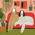 Boho Dogs on Couch Wall Art – Colorful Dog Print with Plants