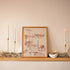 Framed Poster: solid wood frame in natural, white, or black, protected by shatterproof plexiglass and ready to hang vertically or horizontally.