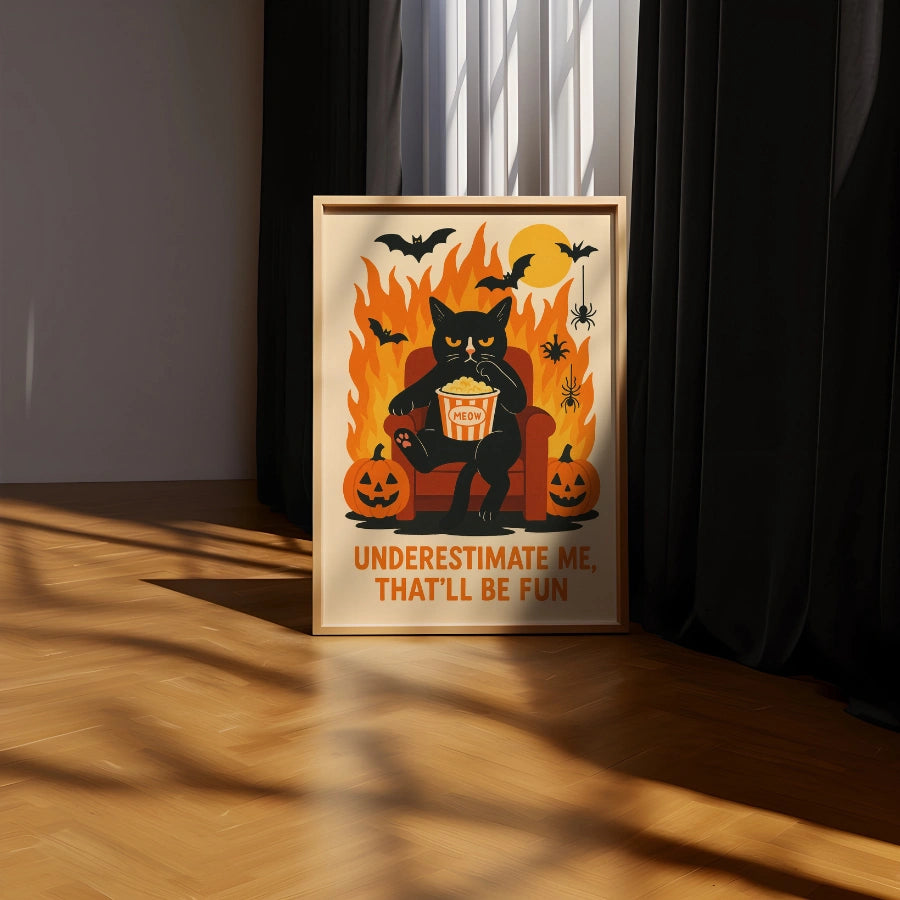 Sassy Black Cat Halloween Print – Funny Spooky Wall Art