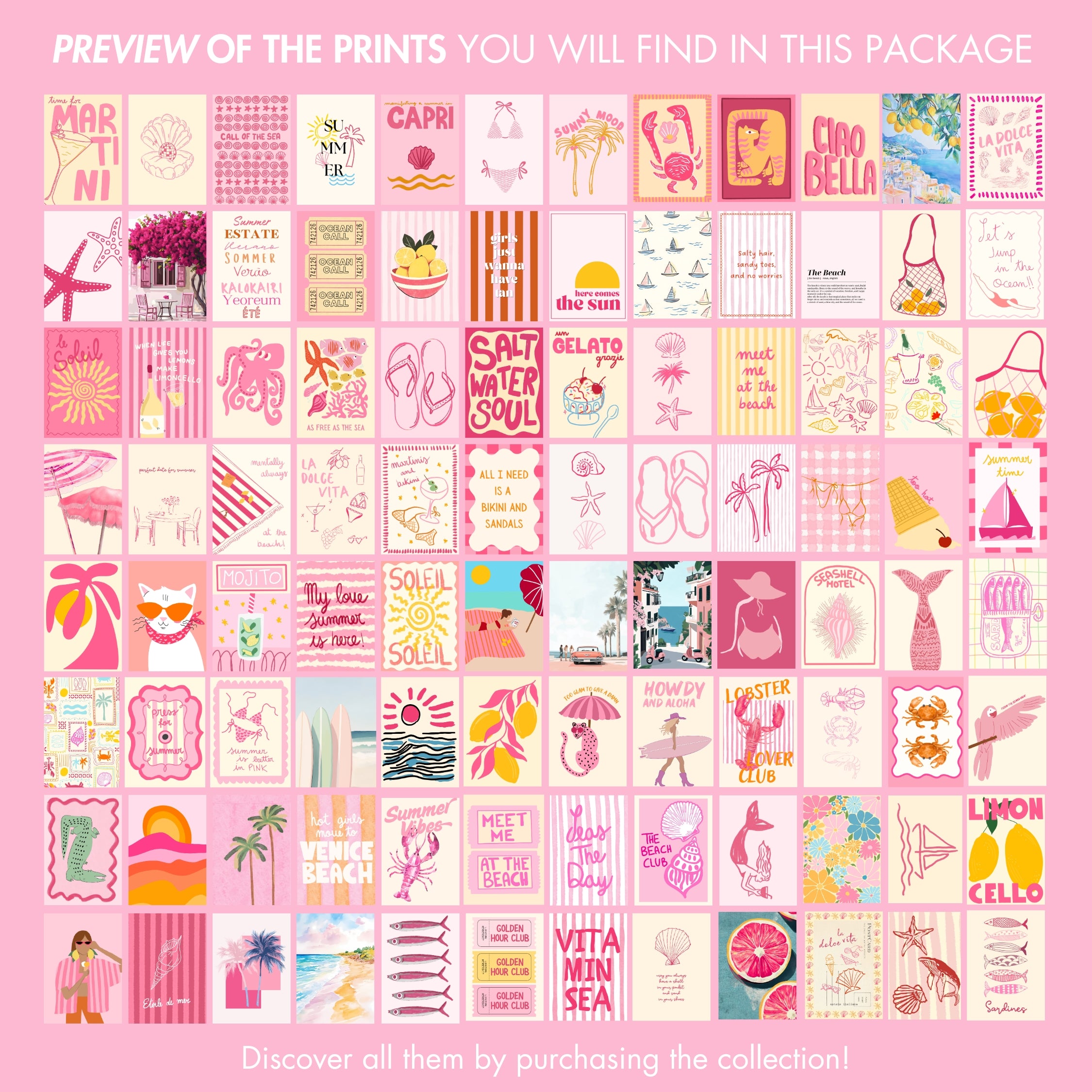 Dive into the summer aesthetic with the Handmade Pink Coastal Decor Collection, featuring over 130 digital prints hand-drawn on iPad Pro. Inspired by sunshine, sea breeze, and retro coastal vibes, each illustration blends warm pink tones with playful coastal motifs. Perfect for adding a touch of color, joy, and summer spirit to any room.