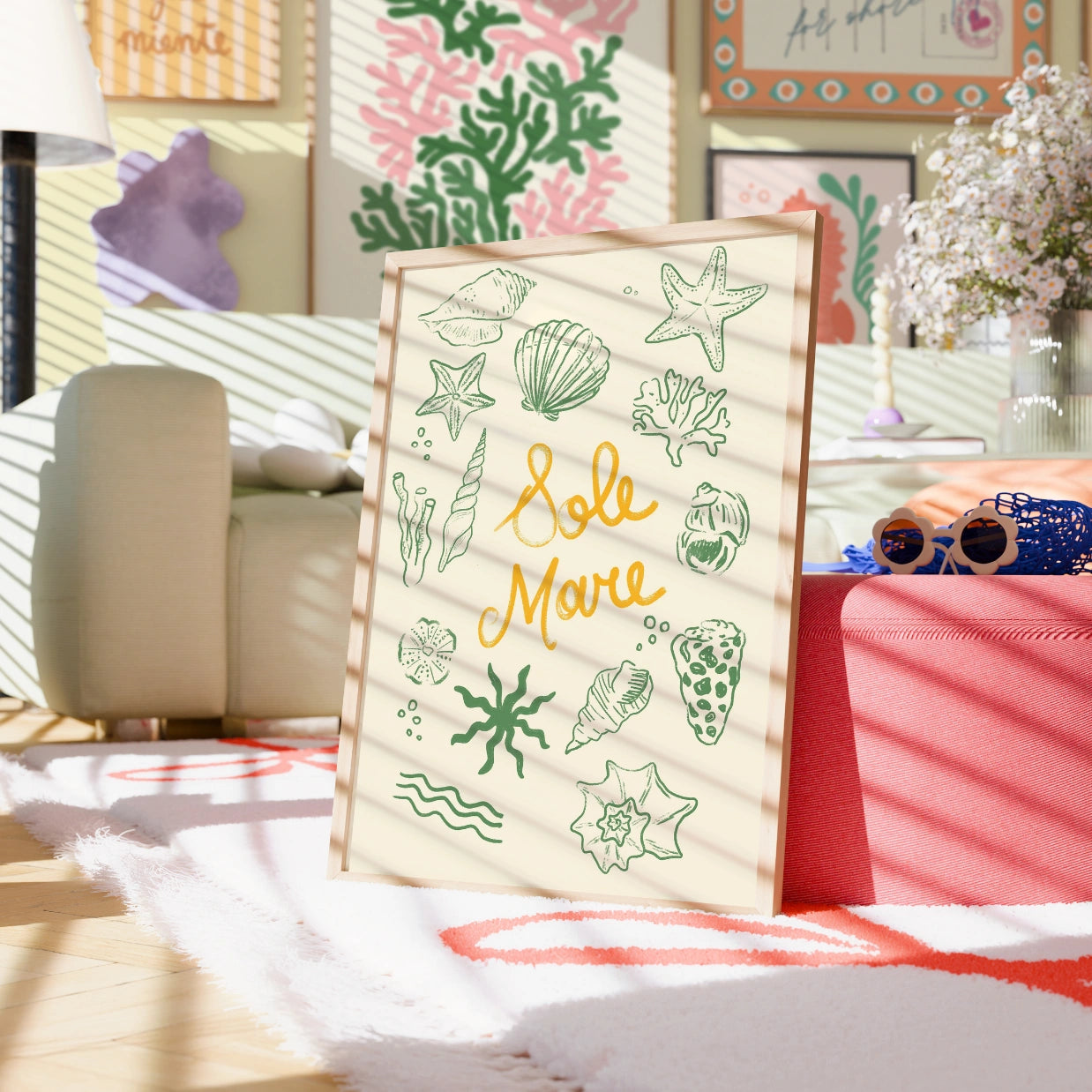 Each design is inspired by sunny beach days, coastal charm, and the relaxed energy of the season. Created on iPad and printed on high quality materials, these prints combine modern style and warmth to create a bright and inviting atmosphere.