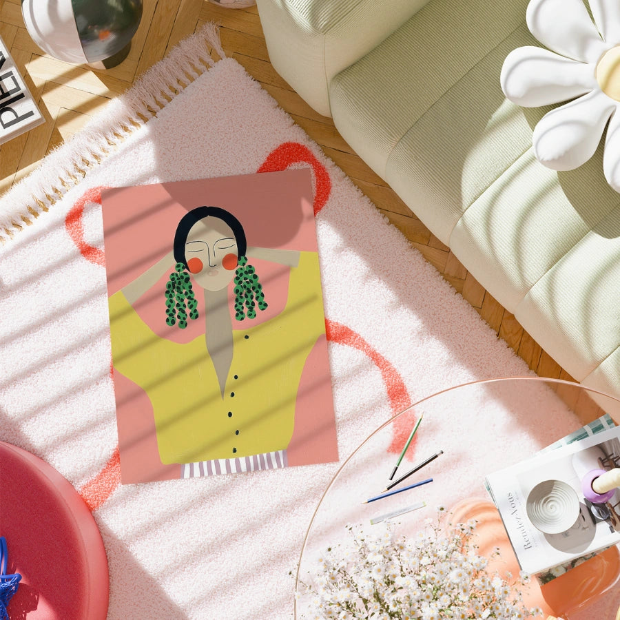 Bold Earrings Boho Wall Art – Vibrant Female Portrait