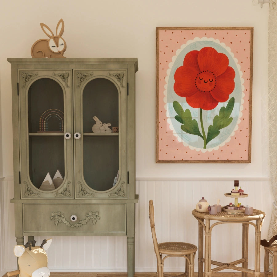 Smiling Red Flower Nursery Print - Cute Botanical Wall Art