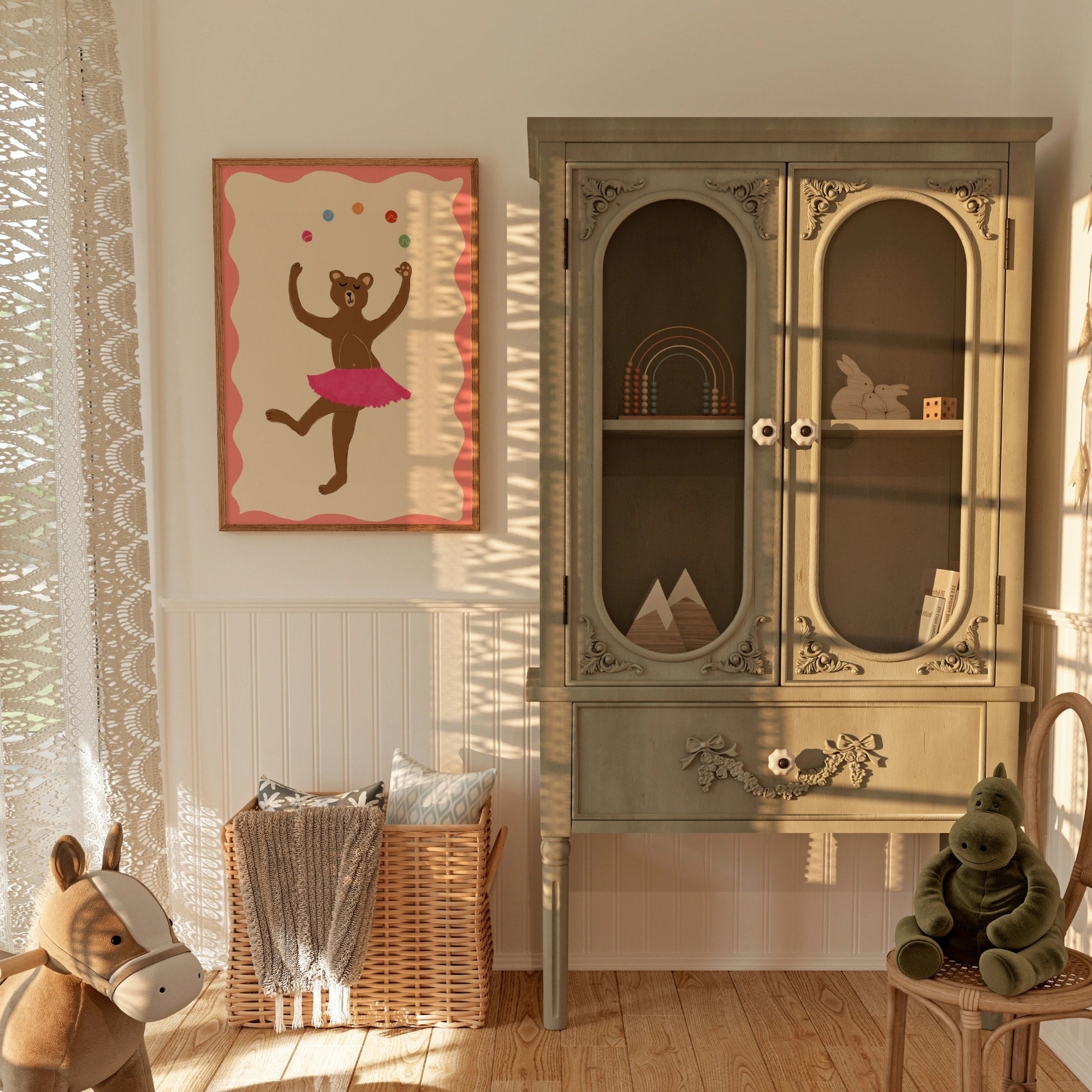 Dancing Bear Wall Art - Pink Ballerina Nursery Print