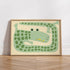 Delivered ready to hang in a solid wood frame available in natural, white, or black finishes. Protected by shatterproof plexiglass and includes a hanging kit for both vertical and horizontal display.