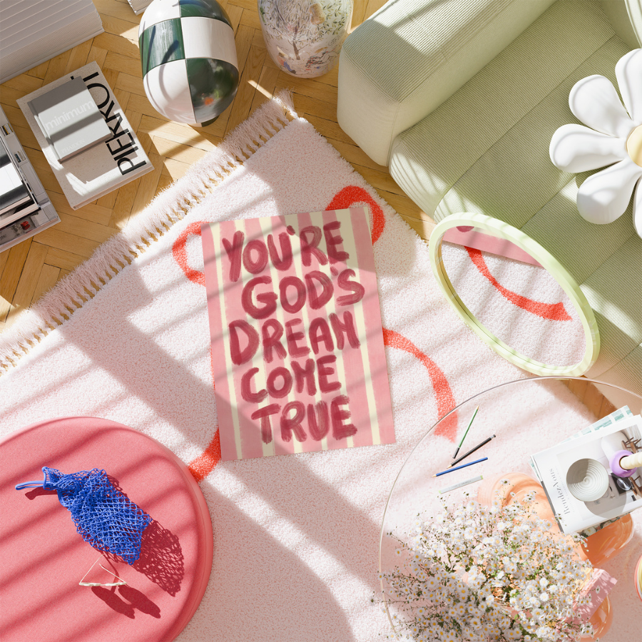 You’re God’s Dream Christian Wall Art – Pink Hand-Painted Bible Quote Print