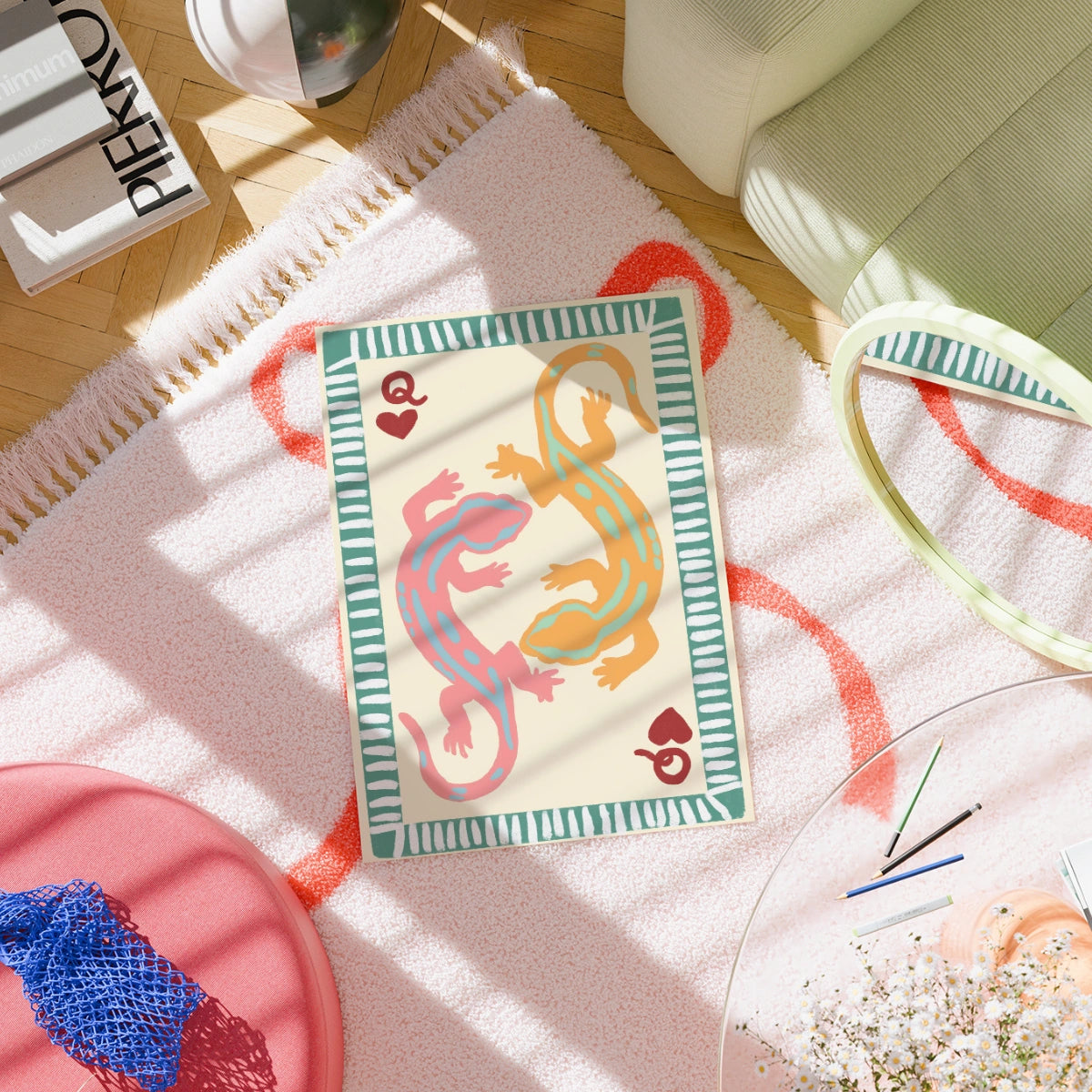Gecko Queen Print – Tropical Playing Card Wall Art